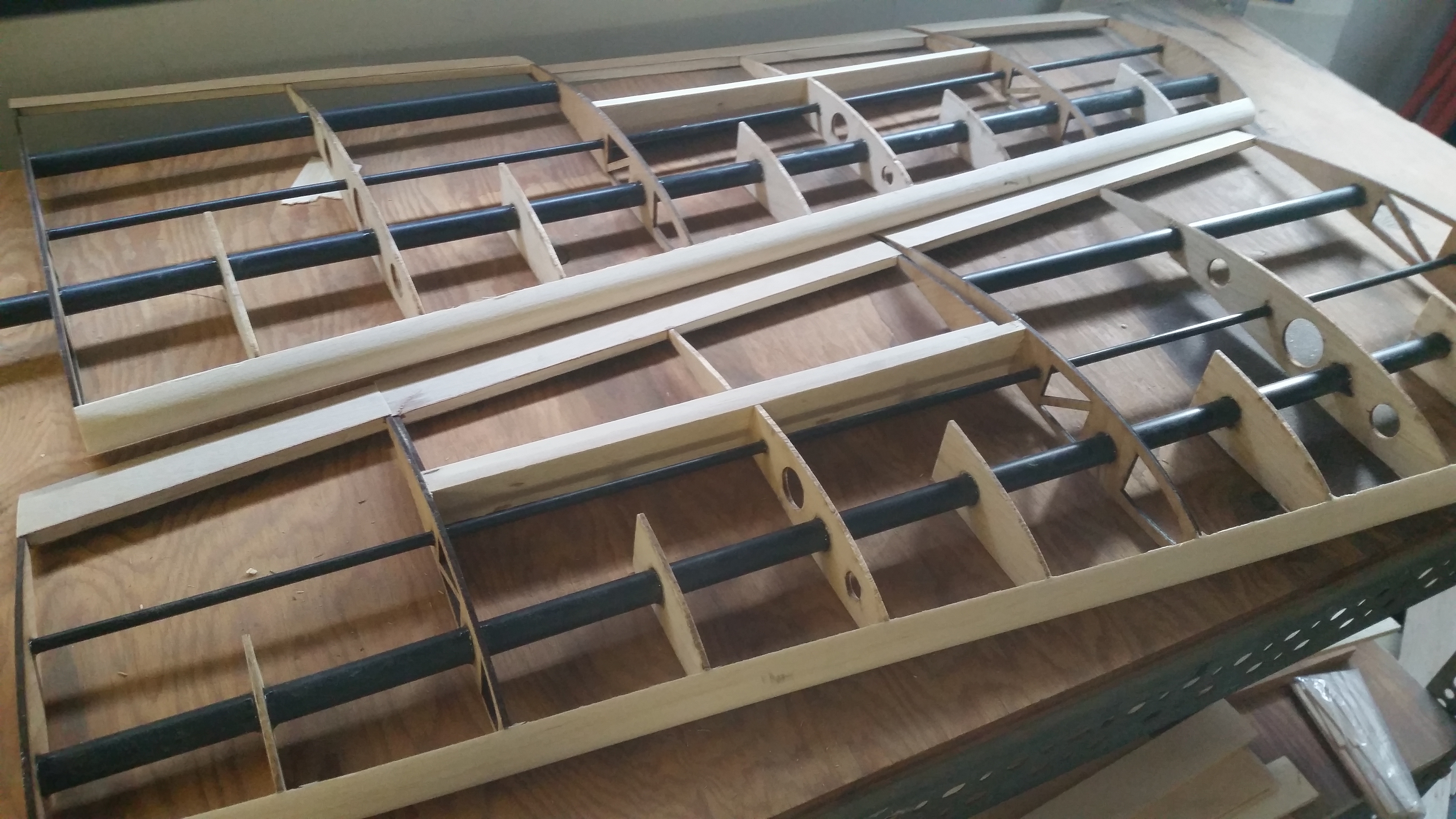 Integrated Solidworks design with fuselage, wing and tail designOuter wingWing with AileronsWiring the TailFuselage with all wing parts attachedWing attached to FuselageGPSTesting of the 3D printed connector blockQuadcopterWing while being glued to the carbon fiber sparsSewing the payloads!Outer wings