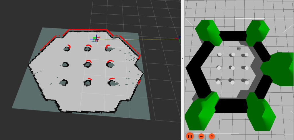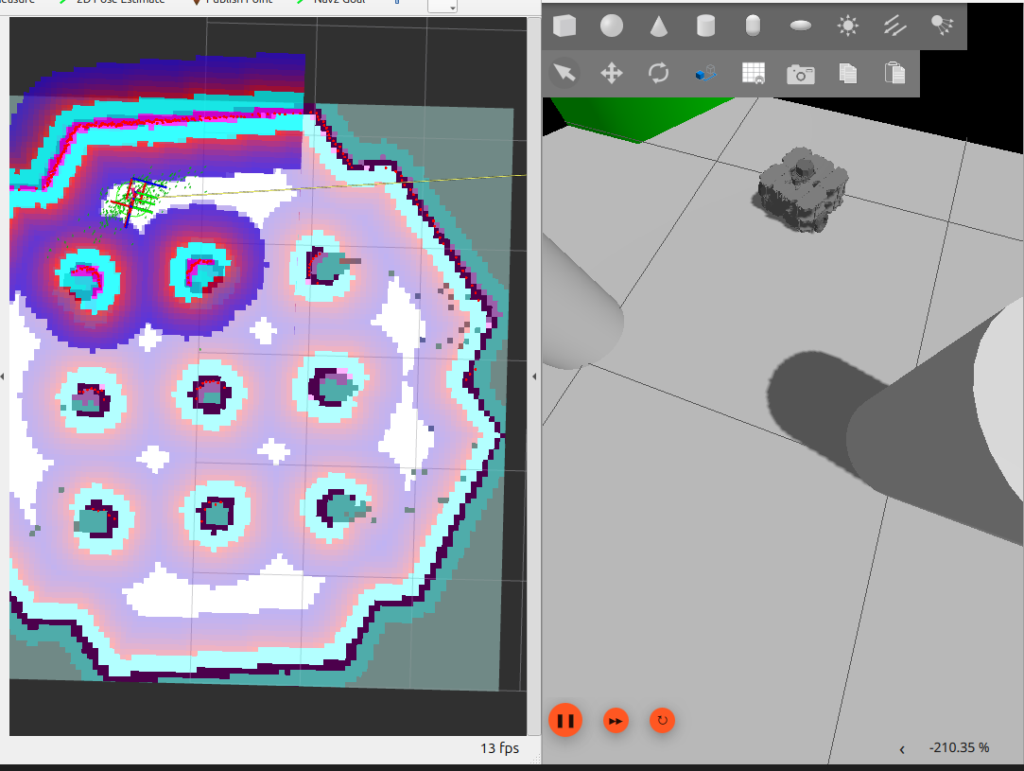 Successfully used the program “Gazebo” to simulate a robot in an environment and capture data from its simulated sensors. By using its LiDAR, we produced a map of the “Turtlebot” simulated environment, and with data from its IMU and wheel encoder, we successfully navigated to selected goal points.