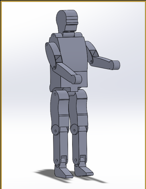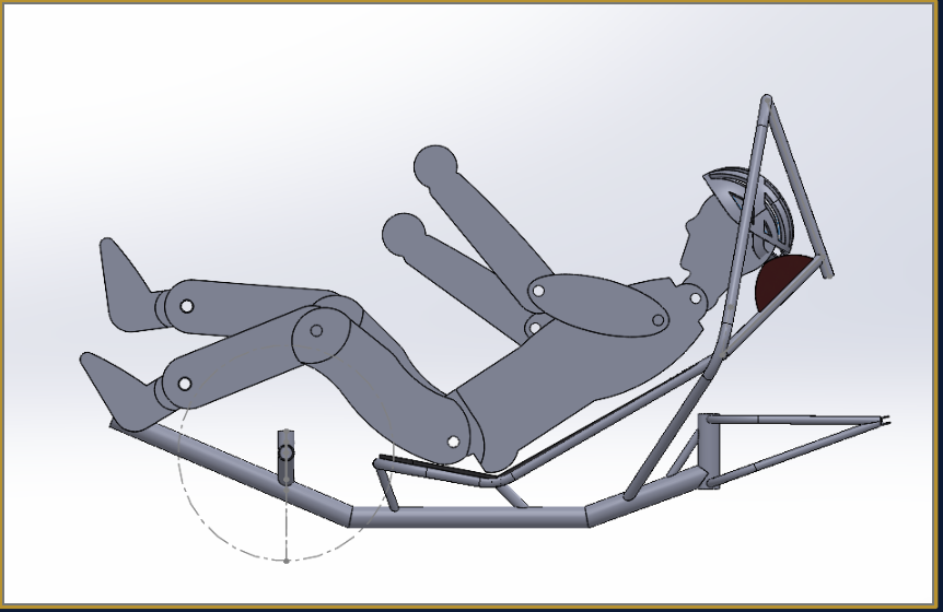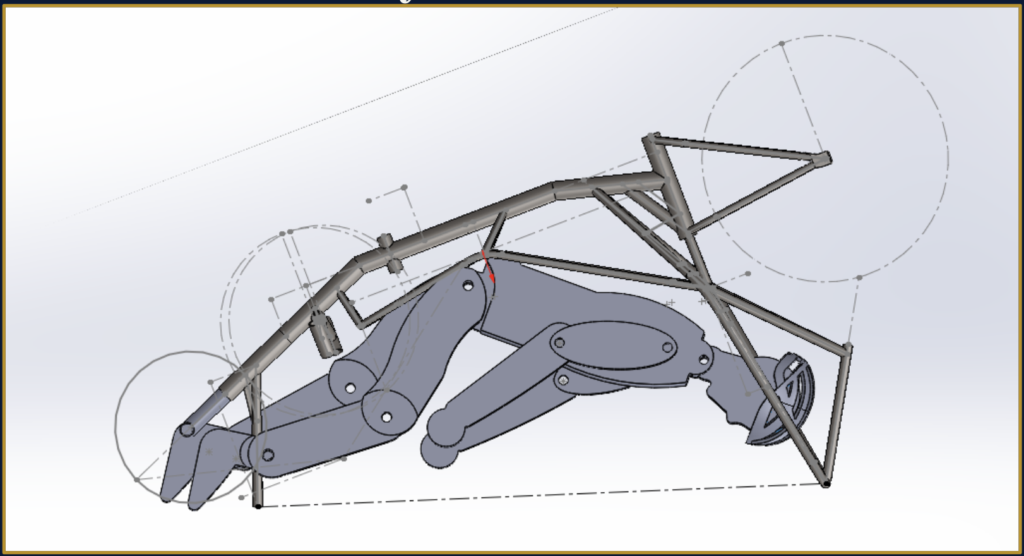 To ensure the ergonomics of the frame design, a fully-posable dummy was constructed in SolidWorks according to the size of our largest potential riders.
