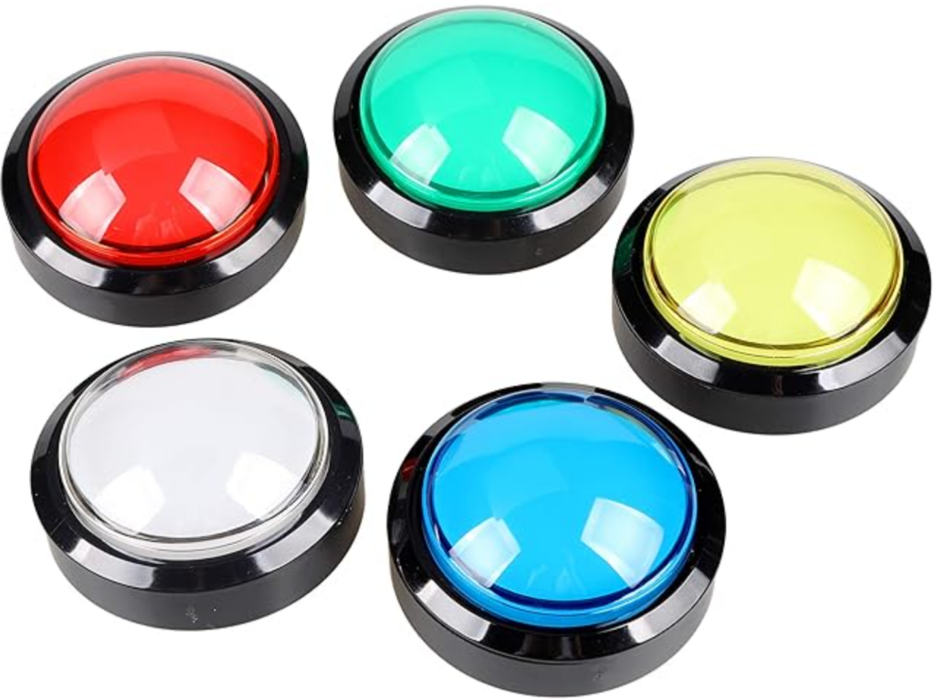 We will be using four, sixty milimeter arcade buttons to control the forward and backward driving as well as left and right steering. We found the sixty milimeter buttons to be the appropiate size for the NAO robot. They are not too small where the NAO misses pressing them and not too large where it is too big for the base plate width. These buttons are micro switches where the NAO has to continously apply pressure for the button to work.